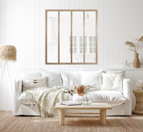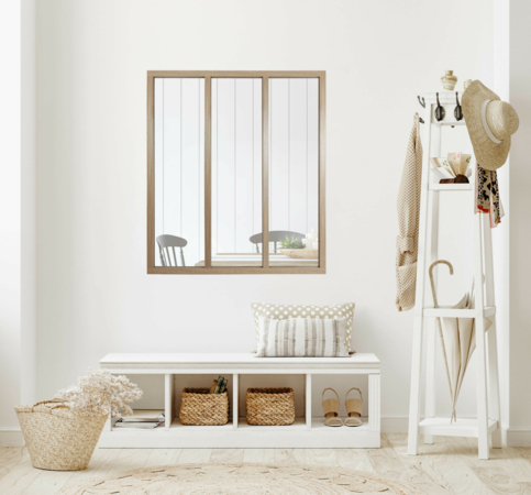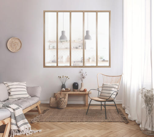 The Wood glazed partition combines the weight and durability of aluminium with the natural touch of a wood-textured finish (oak texture veneer). With its warm and aerial design, it blends into any room to infuse it with a subtle Scandinavian ambiance.