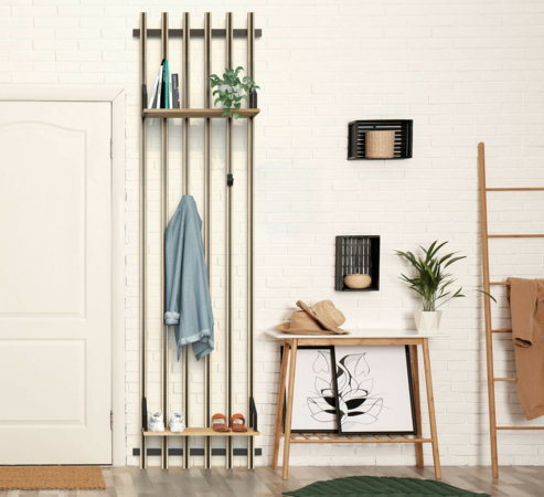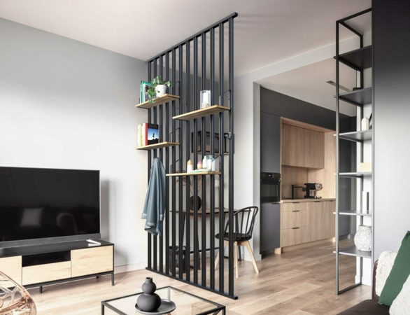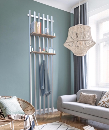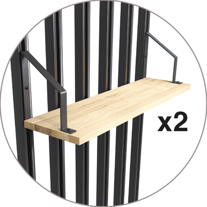 Fixé au mur ou utilisé en cloison pour délimiter subtilement des espaces, le Claustra offre une solution polyvalente, esthétique et fonctionnelle. Sa conception ingénieuse permet l'ajout d'accessoires tels que des étagères et des patères, ainsi que la possibilité d'aligner plusieurs kits de Claustras pour créer une ambiance unique et personnalisable, optimisant l'organisation de vos espaces de vie.