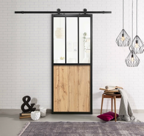 Une porte coulissante intérieure est la solution pour optimiser l’utilisation de vos surfaces, en supprimant l’espace de débattement d’une porte classique. Choisissez un rail Grange pour son style rustique et sa confection alliant solidité et légèreté. Rail compatible avec les portes coulissantes Kit'atelier et vendu en kit complet incluant roulettes (diamètre 7 cm), butées, vis murales et guide au sol.