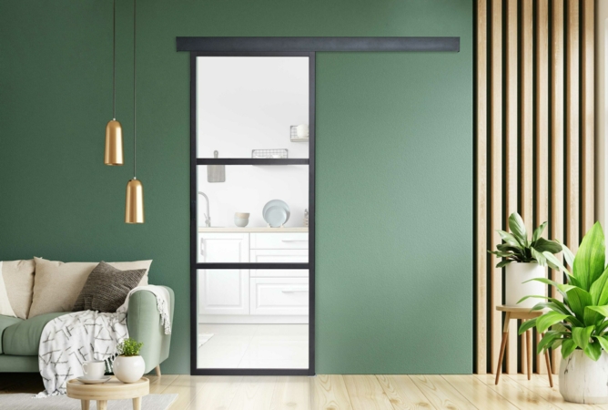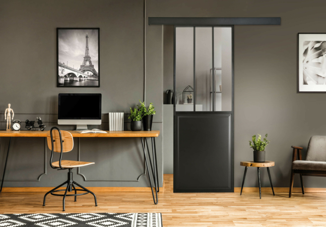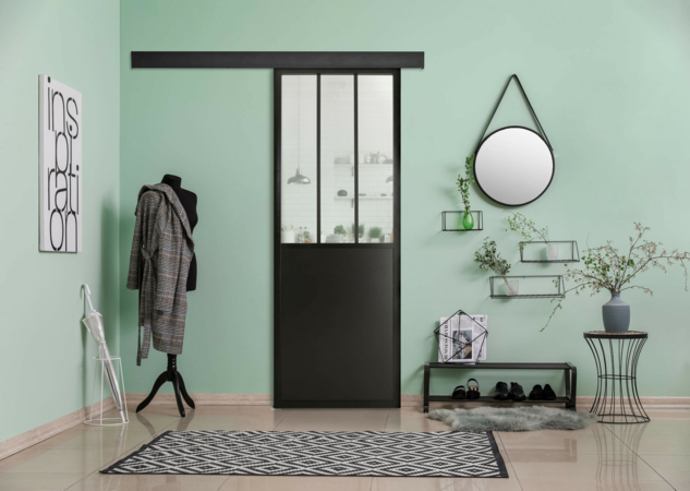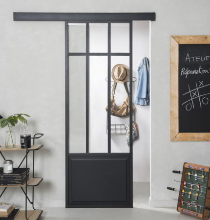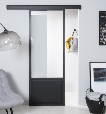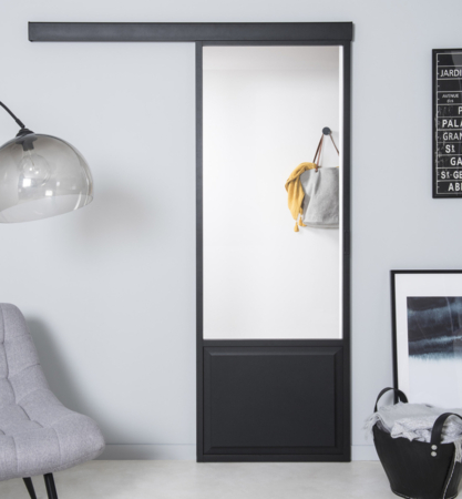 Une porte coulissante intérieure est la solution pour optimiser l’utilisation de vos surfaces, en supprimant l’espace de débattement d’une porte classique. Avec sa fabrication en aluminium lui conférant légèreté et solidité, ce rail pour porte coulissante, au style sobre et moderne, se marie avec les portes coulissantes Kit’atelier. Fixation en applique, livré en kit complet comprenant le rail, le cache-rail peint, les embouts, un kit roulettes et amortisseurs, les équerres de fixation et un doigt de guidage.