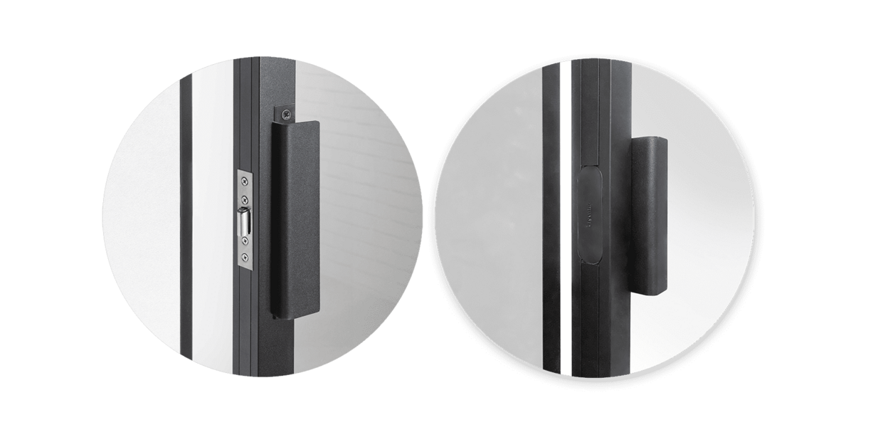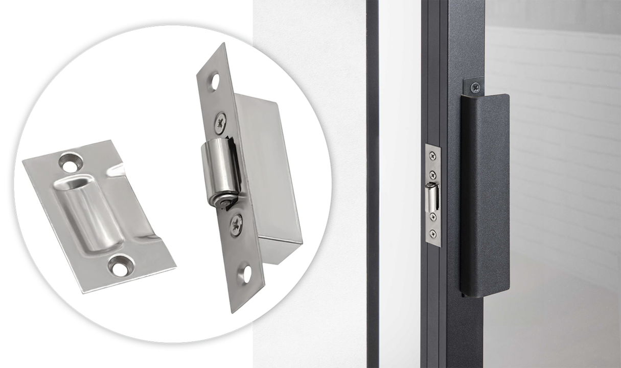 Les portes Kit’atelier se dotent de serrures aussi pratiques que discrètes. Classique serrure à rouleau ou subtile serrure magnétique (disponible en noir et en blanc) sont disponibles à la vente à l’unité.
